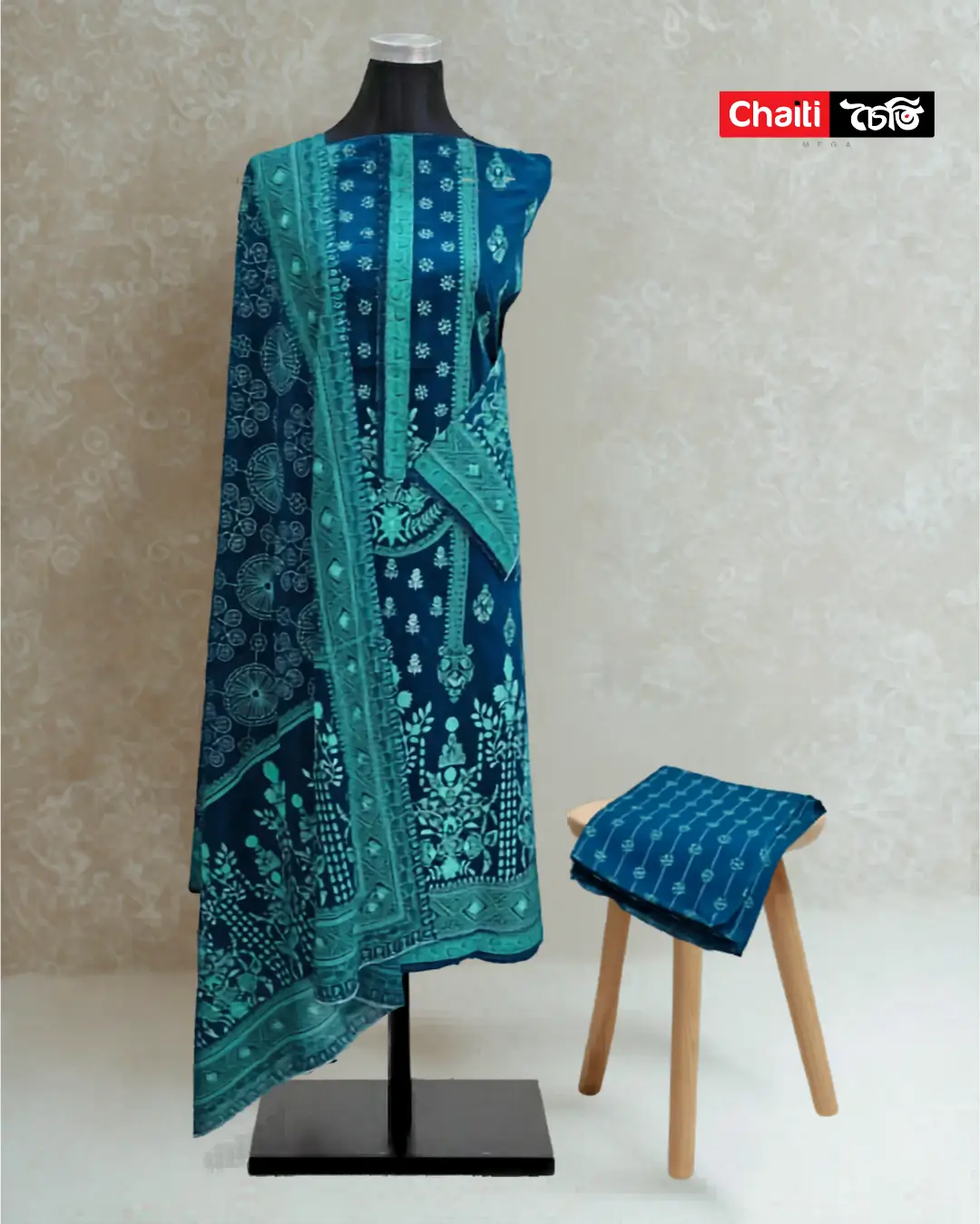 Chaiti Premium Pure Cotton Ready Three Piece