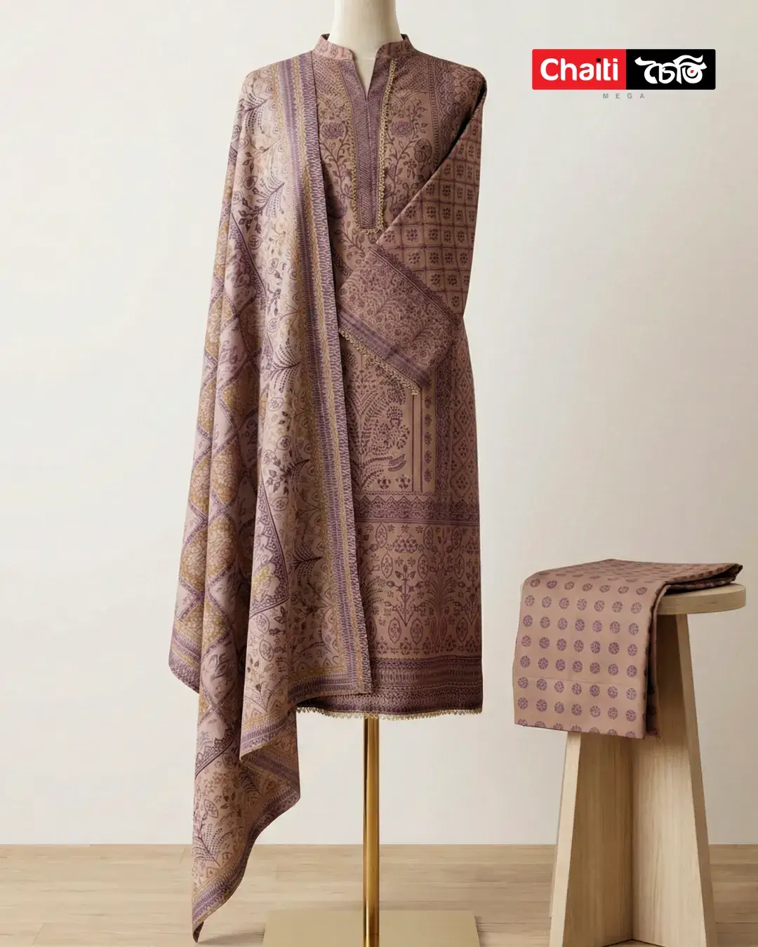 Chaiti Premium Pure Cotton Ready Three Piece