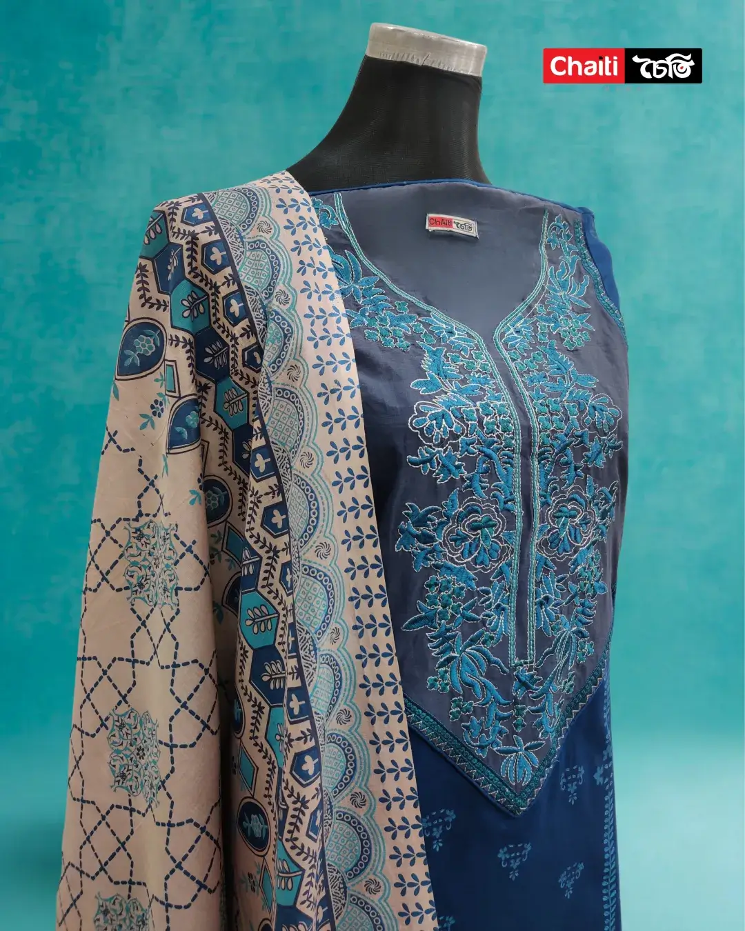 Chaiti Pure Cotton Embroidery Three Piece